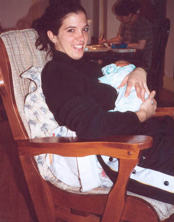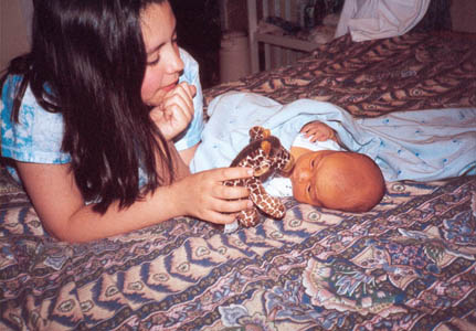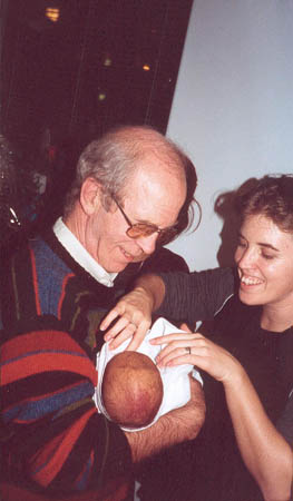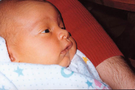This picture was taken at the hospital where I surprised Genevieve. Both dad and I took the time to check the little one thorouhgly. |